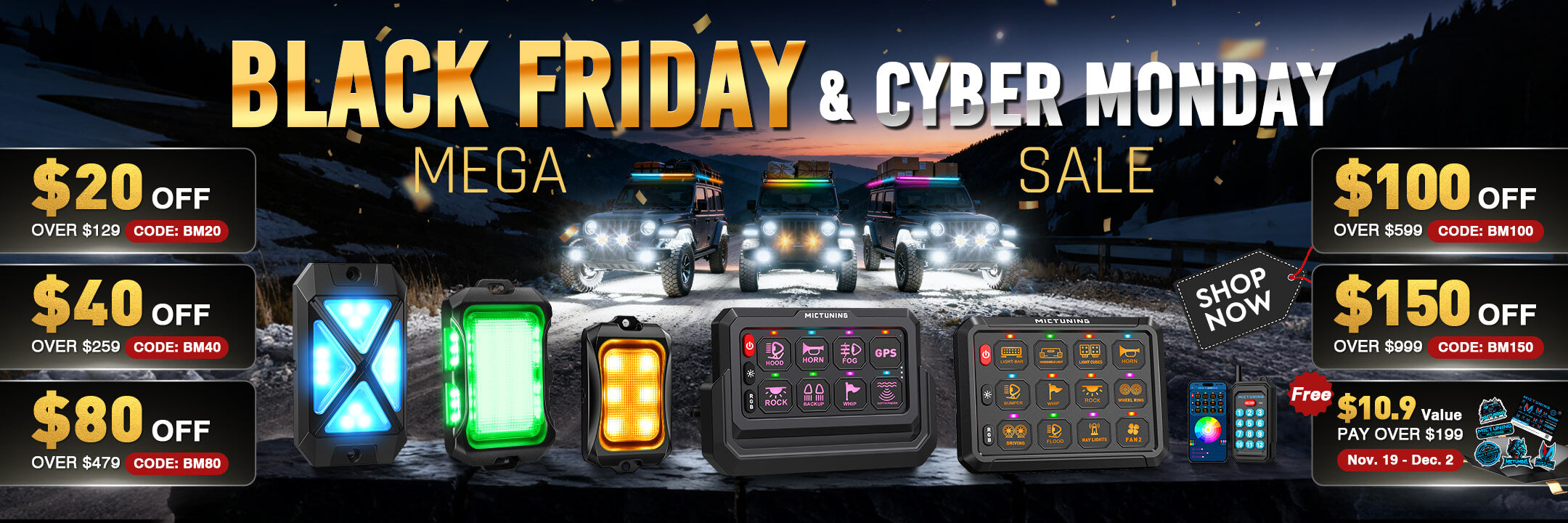 Bought these 32 pod for my large 45 ft tour bus rv, was a real project installing all these on a large vehicle like this. Have to use the controller outside the bus to get signal to all the lights due to the size and metal of the bus. They are very bright and put out great light when traveling or at the rv site. I up graded all the wire to 14 gauge to handle the long runs and higher wattage.