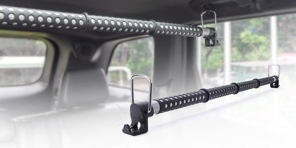 This Car Clothes Hanger Bar will easily adjust to fit the width of your vehicle. It can be extended from 36 inches to 65 inches. Easy to install, simply attach the clothes hanger securely to the rear seat passenger handles or hooks of your vehicle. A far better choice over the plastic models that may slip off or break easily over time. When not in use, Simply retract the hanger to its original size, and store it conveniently underneath the rear passenger seats.
