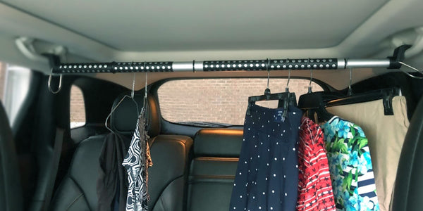 So easy to put in the car and hang clothes. This hanger bar can hold your clothes and you don't have to pack them. When traveling for business so it made it really handy to be able to just grab them from the closet, hang them up and go. Great either if your moving or to keep in the car for a person on the go and needs to keep a quick change of clothes and still have them look fresh.