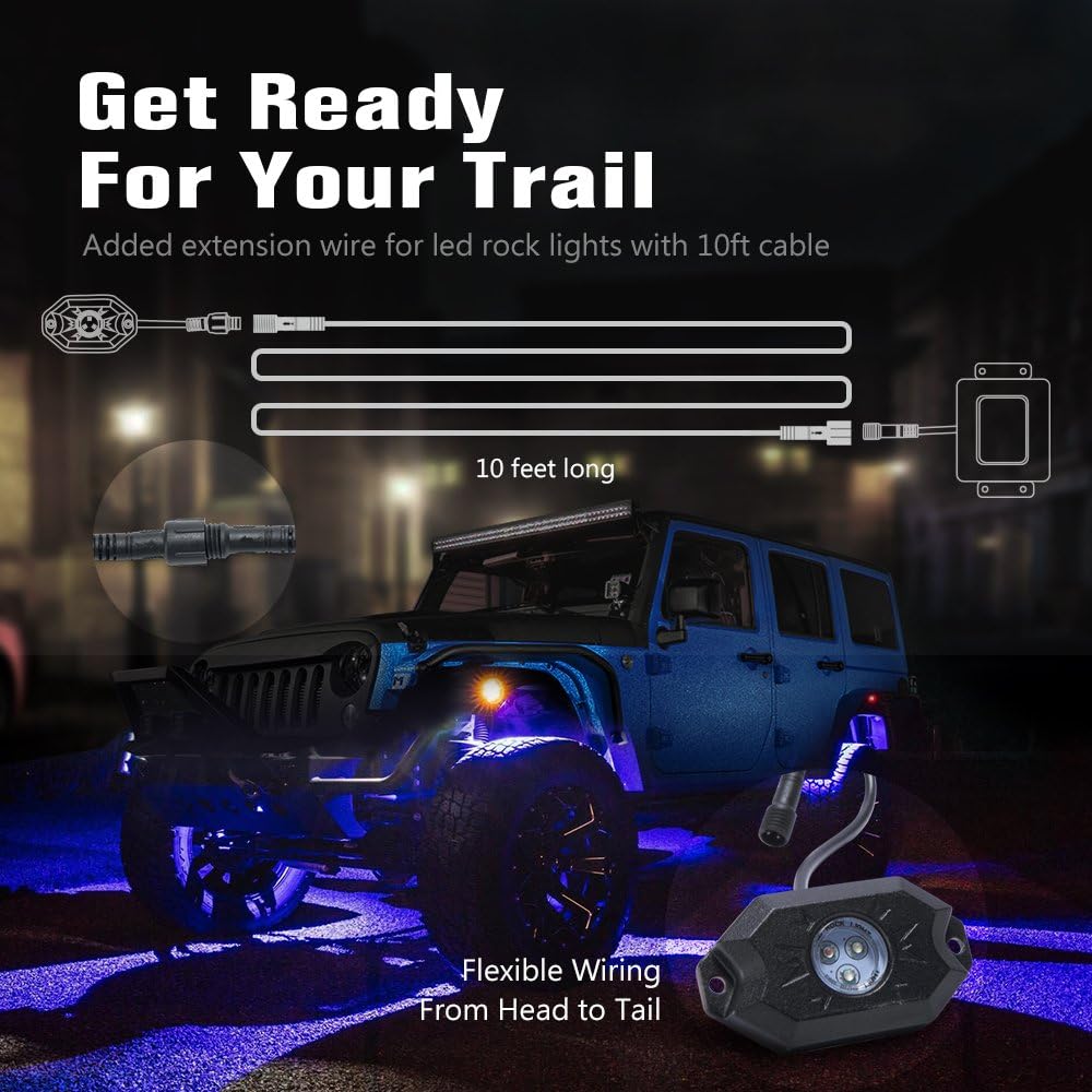 • Wire Replacement - Keep your circuit safe by replacing the worn out cable of led rock lights. Fit for Motorcycle, ATV, UTV, Off Road Truck, Pickup, Boat, Dome, etc