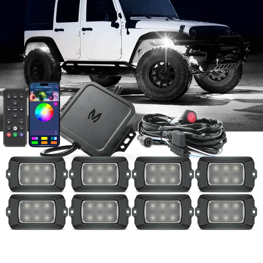 • True Pure White & Colors Light - Unleash the magic of RGBW rock light kit technology! Our 4-in-1 LED chip delivers crisp pure white light and 16 million RGB colors. Finally, ditch those cheap rock lights for Truck that turn pink in the cold—this is pro-grade lighting